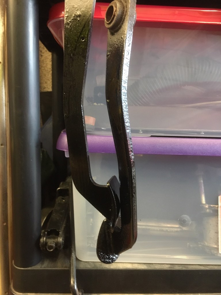 The brake and clutch pedal with a fresh coat of paint – tops still need painting