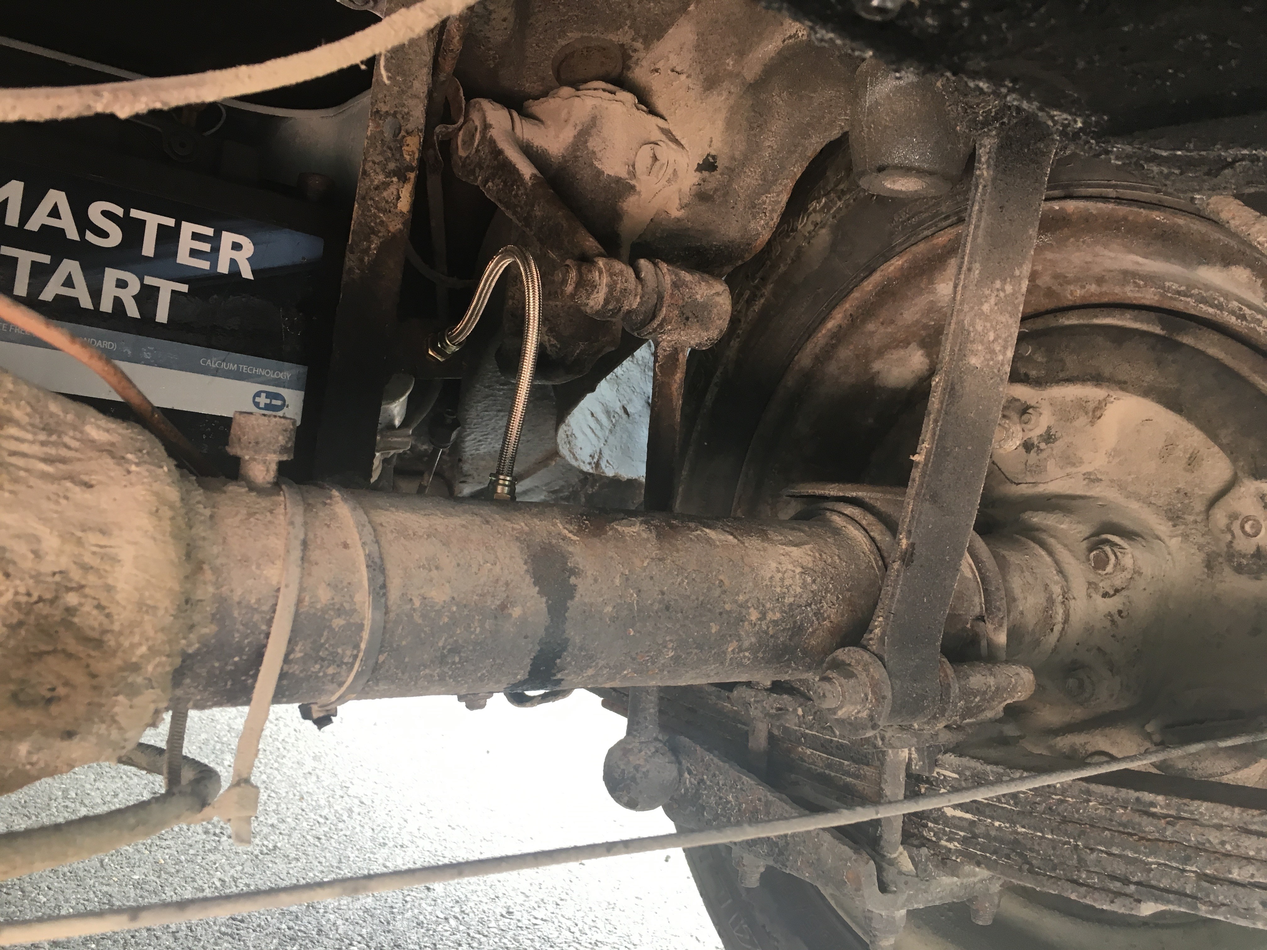 Back to Saturday and we jacked up the rear of the MG, took both wheels off and had a look at the brake pipes. We replaced the flexible hose (on the o/s) and the short copper brake pipe from the three way union to the o/s drum. The copper pipe needed to be bent to shape and we were able to use the old one as a template.