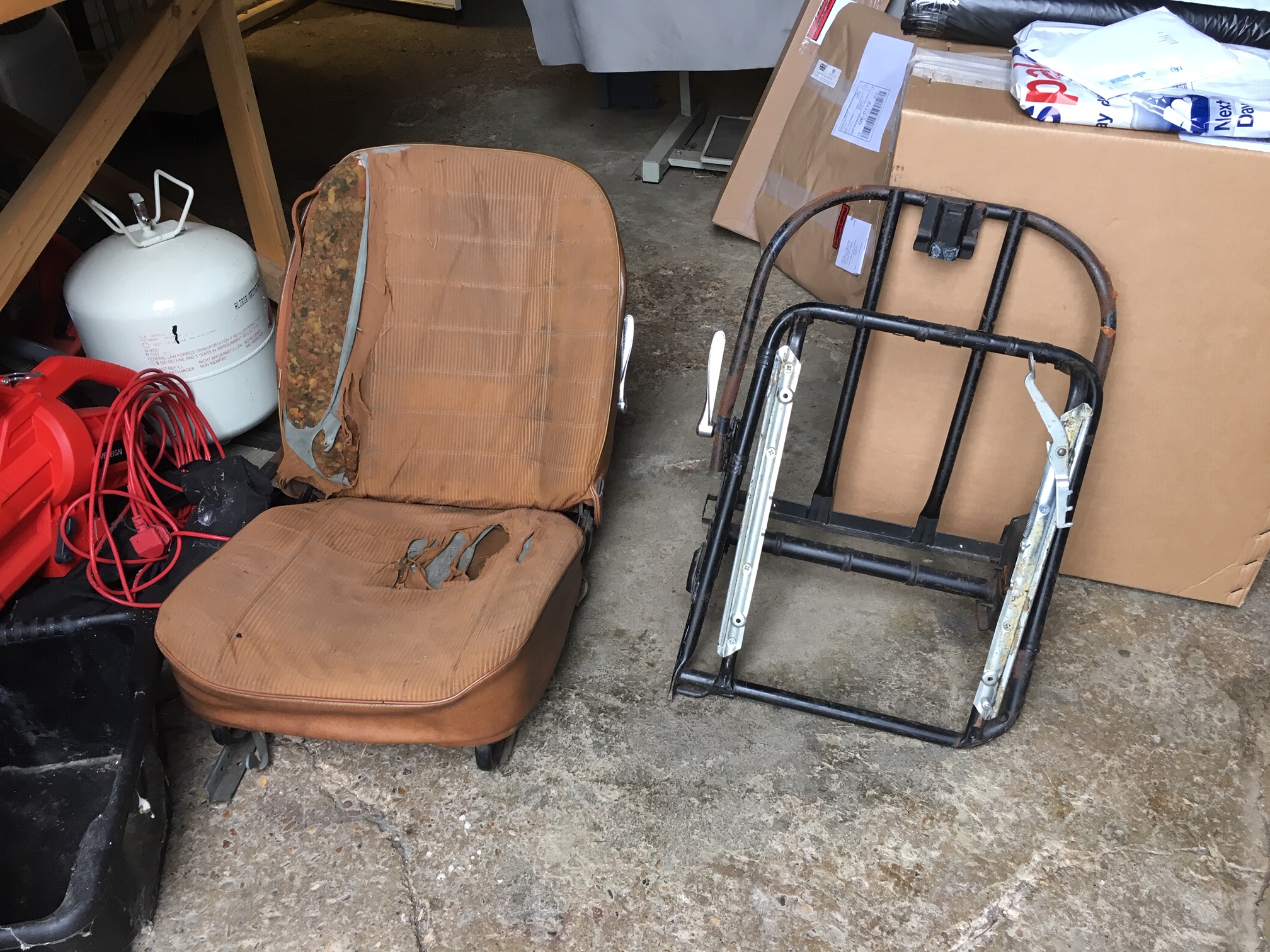 And finally, today en-route to Cambridge for work, I dropped the old seats at Mirror Trim in Toddington. I had placed the order for the seats at the MG & Triumph Spares Day earlier in the year and arranged for them to done through the summer. They should be ready around September and will either go into storage, or straight into the car depending on progress. Mirror Trim are also making up a set of carpets, so that will be a substantial part of the interior sorted, although the headlining remains a maze of choices from which I have not yet found the exit. Mirror Trim are one of those lovely cottage industries working literally out of an old oak framed barn from where they churn out high quality product. What a great way to make a living I’m sure. Here is a last look at the seats before their transformation.
