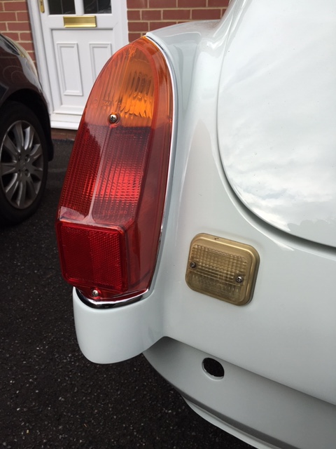 I’m at a similar stage on my rebuild of a 1967 GT, although many years behind you in terms of time taken to get to this stage! I’m afraid the problem you experienced with the reversing light is typical of many pattern parts, which is why I always try to refurbish original items wherever possible. It’s a bit late to mention this now, but you could have purchased just the lens for the reversing light, rather than the whole unit……