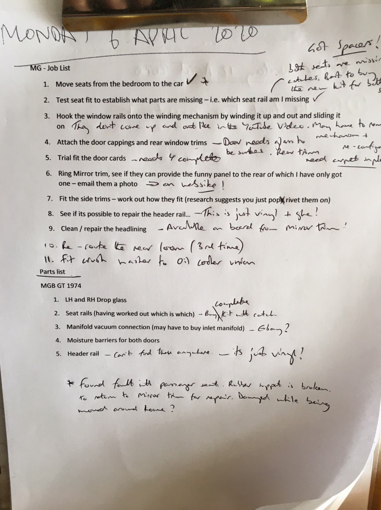 My list of jobs – I didn’t get too far!