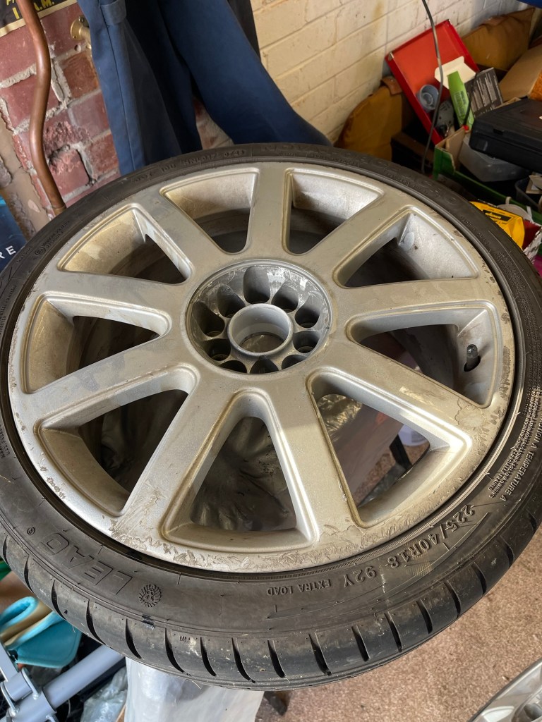 Anyway the rear wheels are off and ready to refurbishment in the garage, then I will have a matching set!
