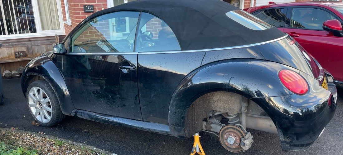 A brief easing of the relentless rain and a spare hour or two gave me the opportunity to pay some attention to the Beetle. First job was to inflate the two front tyres which had been deflated for repainting and torque the studs, duly completed with my trusty torque wrench. There followed a brief test drive around the estate during which nothing fell off.