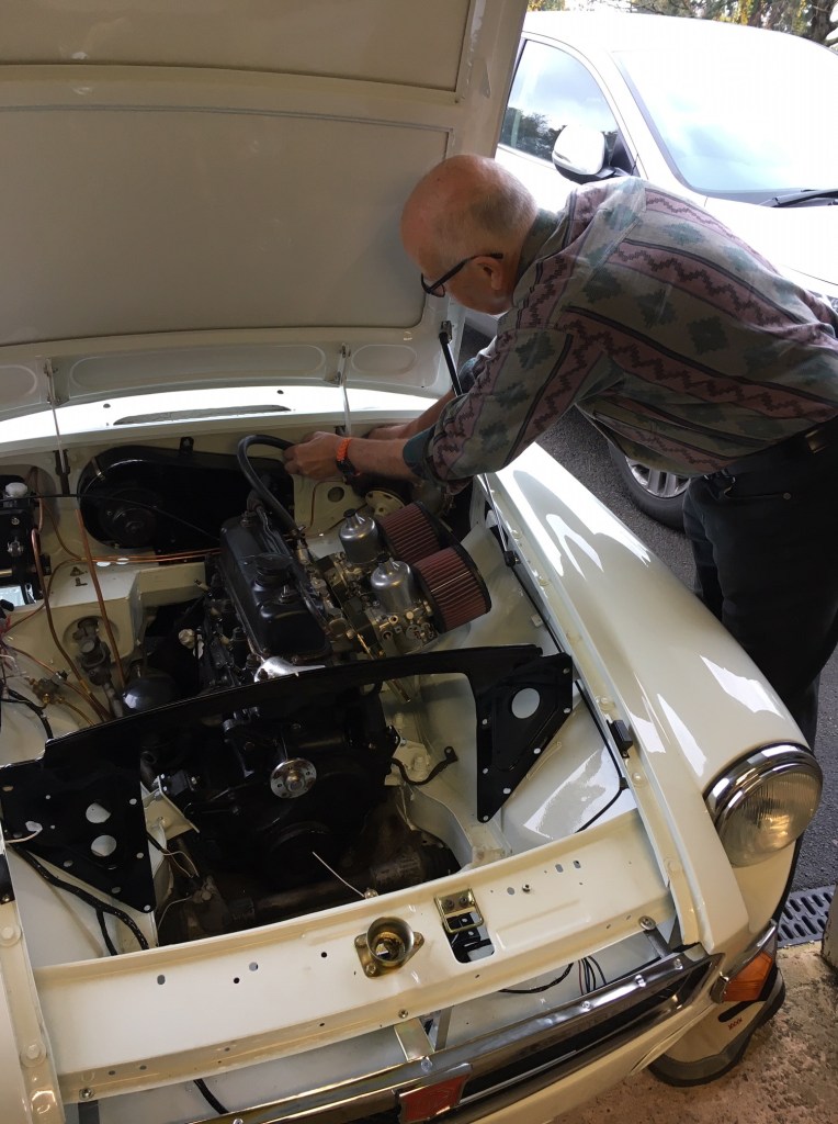 The MG started a little reluctantly, not unusual when it’s been left to sit for a while before then smoothing out, albeit idling too fast, and I was able to back it out of the garage. However as soon as I pulled away I could hear pinking so I stopped and trickled back to the drive for an adjustment, retarding the ignition by rotating the distributor anti-clockwise.
