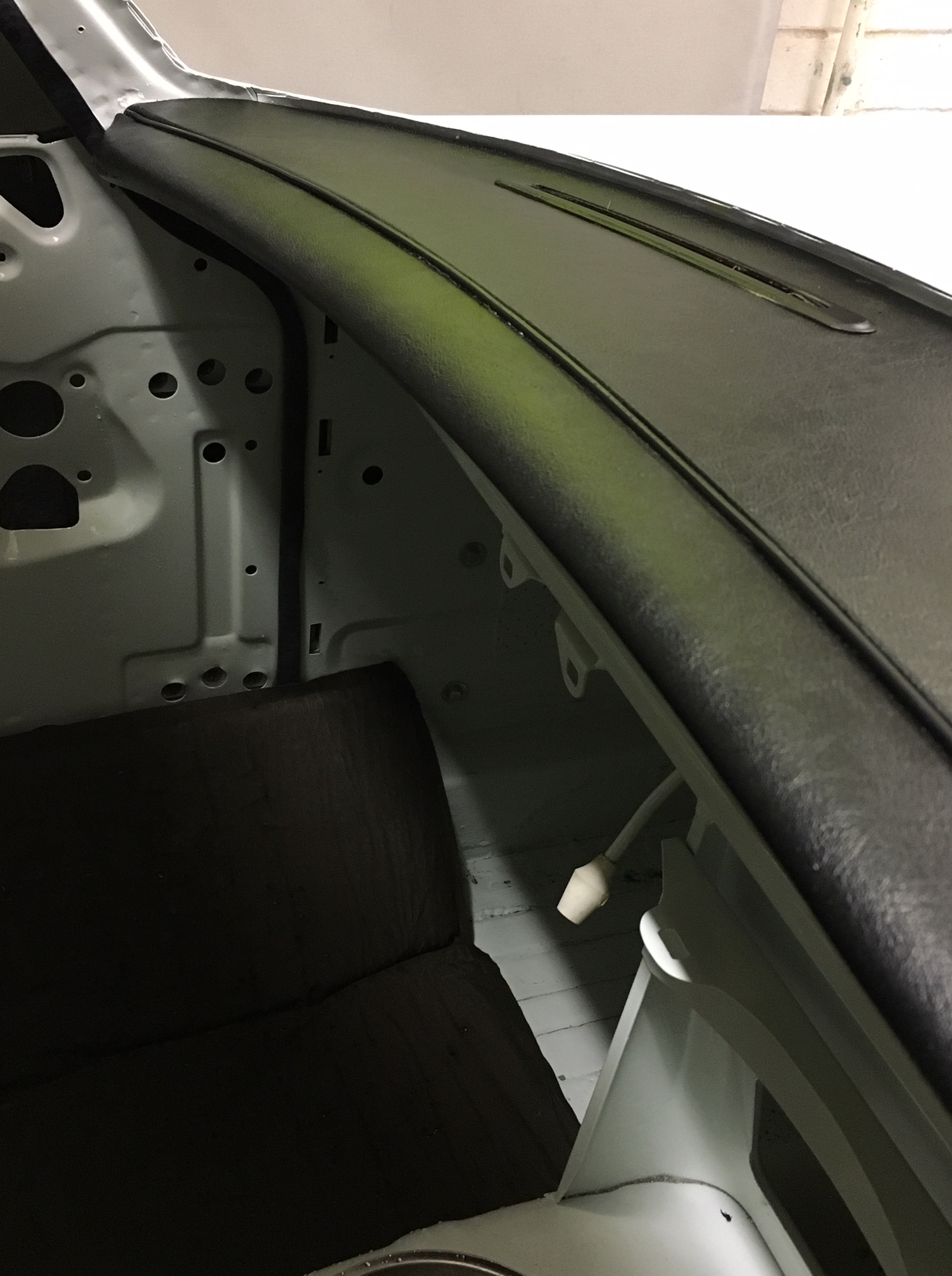 The resprayed vents in place on the dash-topThe crash rail in place, looks okay doesn’t it? The yellow colour is a reflection of my Hi-Viz jacket if you are wondering